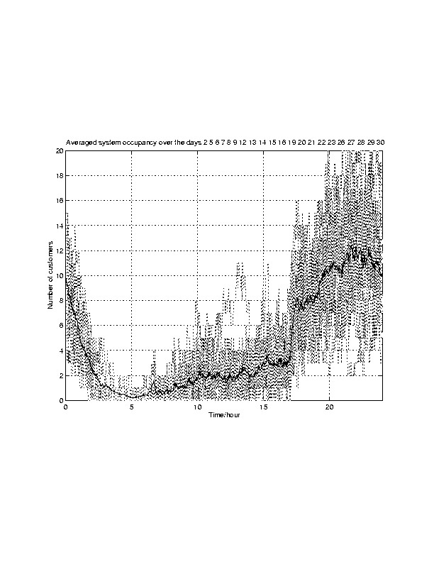 Average number of customers in the staff modem pool on weekdays of January 1998.