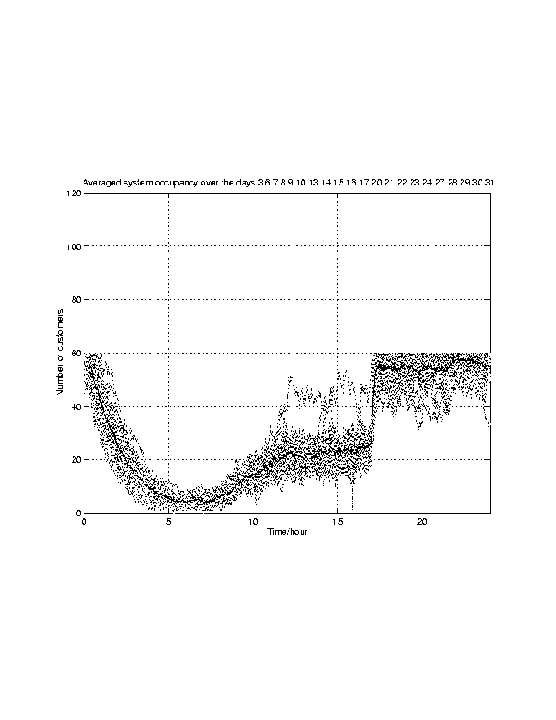 Average number of customers in the student modem pool on weekdays of January 1998.