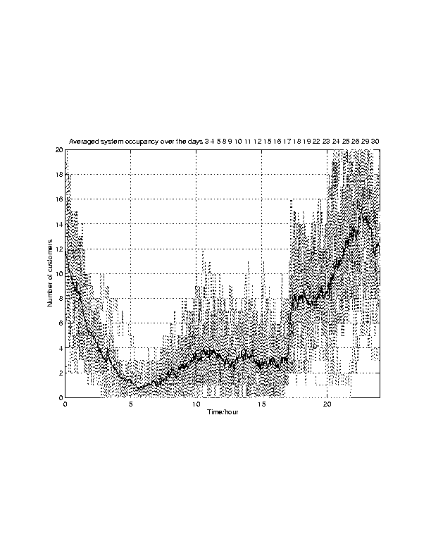 Average number of customers in the staff modem pool on weekdays of June 1998.