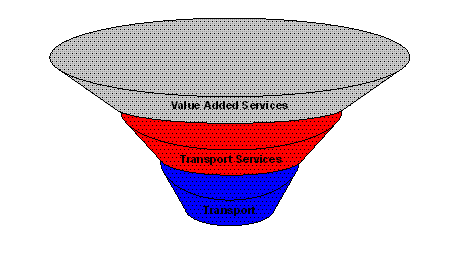 Ethernet has established itself as the technology of choice in the local area network (LAN). The recent addition of carrier class features is allowing Ethernet to extend beyond the LAN into metro and core transport networks which were traditionally dominated by circuit-switching technologies. The broad vision of the ETNA project addresses the requirements for a future transport network based on carrier-class Ethernet technologies. WP1 has defined the overall vision based on the anticipated user requirements, the new service possibilities and the evolution of transport network technologies which are increasingly Ethernet-centric. We have taken particular care to reflect operator demand based on projected customer bandwidth requirements over the next decade. This demand, in conjunction techno-economic trends in the marketplace will shape the ETNA architecture. In WP1 we have addressed the high-level business drivers, the current mix of transport technologies deployed by European operators and the future service and bandwidth trends. Using this as a point of departure the ETNA project can now focus its efforts to define an architecture which addresses challenges in key areas such as inter-carrier/inter-domain services, mobility, scalability and network control. A key output of WP1 is a network model that divides the network functionality into three distinct layers: the transport layer, the transport services layer and the value-added services layer. Figure 6: Layers of the ETNA network model