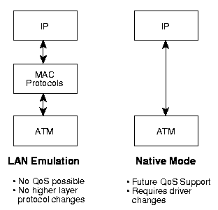 Vaihtoehto LAN-emulaatiolle on ns. Native Mode operation, jonka toiminta pohjautuu verkko-osoitteiden ja ATM-osoitteiden suoraan muunnokseen. Kun LANE sijoittuu verkon kerrosrakenteessa MAC-kerrokseen, Native Mode puolestaan liittää verkkokerroksen suoraan ATM-kerrokseen, eikä ole sellaisenaan yhteensopiva nykyisten verkko-ohjelmistojen kanssa. Native Mode soveltuu parhaiten uusiin sovelluksiin ja palveluihin jotka vaativat ATM:n erityispiirteistä, kuten QoS:tä. LAN emulaatio ei pysty tarjoamaan QoS:tä.